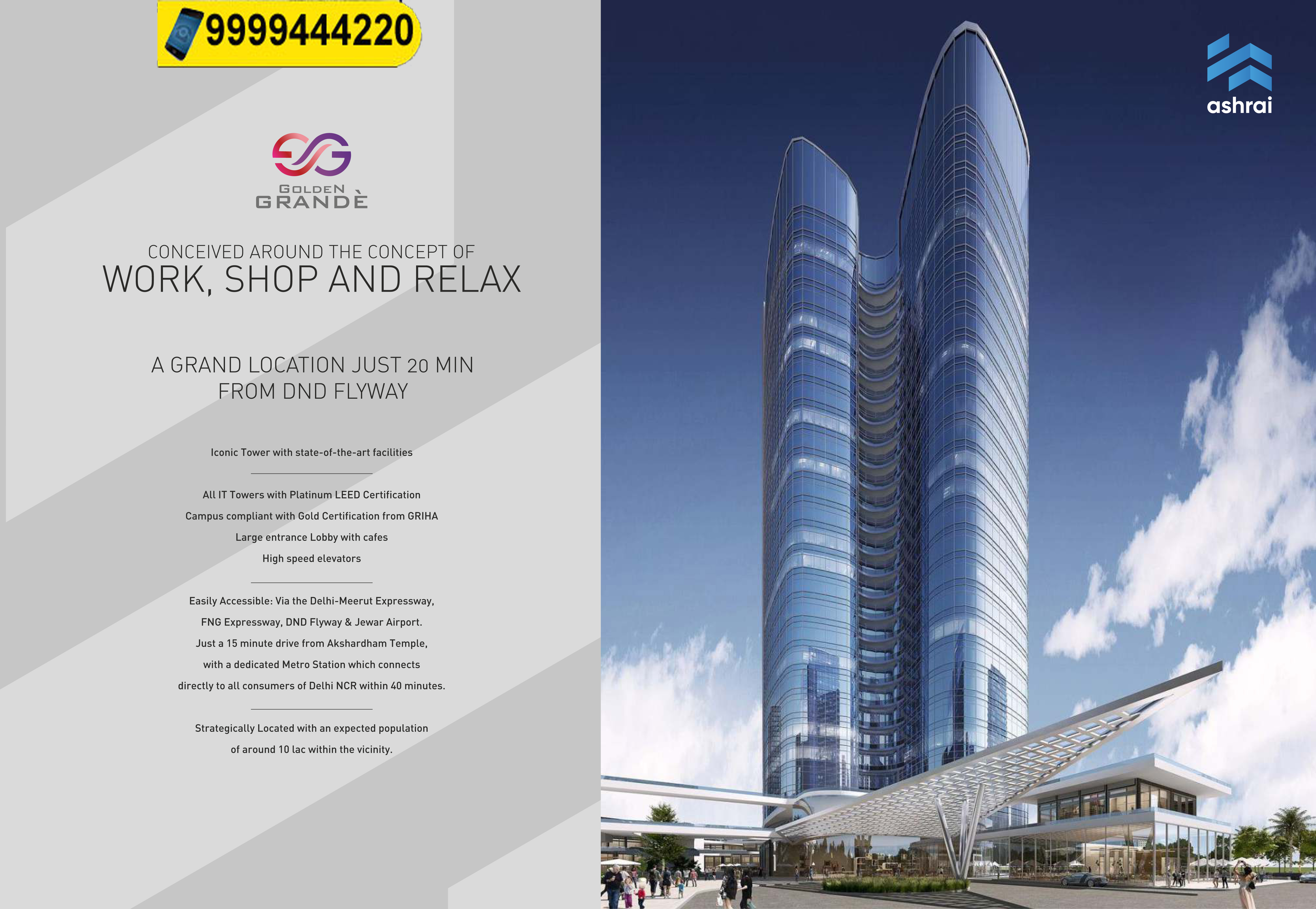 Golden Grande is a commercial undertaking that provides with business investment possibility that makes you on the spot owner of global class stores. It has retail funding opportunity that comes as newly launch industrial undertaking with the aid of Ashrai Infra Private Limited. It has an address at Tech Zone four Noida Extension, Greater Noida West. The venture comes with an improve architectural layout and gives commercial enterprise surroundings for workplace spaces and retail shops. It has commercial stores as meals court docket, retail stores, gaming sector, multiplex and workplace spaces. It suits with each price range this is to be had inside close proximity from Noida. The assignment is a global class IT Park and has great in elegance elegant retail. It has more than one interest arena and has one of the trendiest co-operating spaces. The assignment has exceptional dining restaurant and comes with food courts that offer wonderful flavors. It has brief get right of entry to to metro and provides with adequate vehicle parking space. The undertaking is a inexperienced building idea and has recreational ground with swimming pool and cafe. It has convention center and is derived as included business vacation spot that has provide you with absolutely paid up loan. It comes as most promising vicinity of Noida Extension.